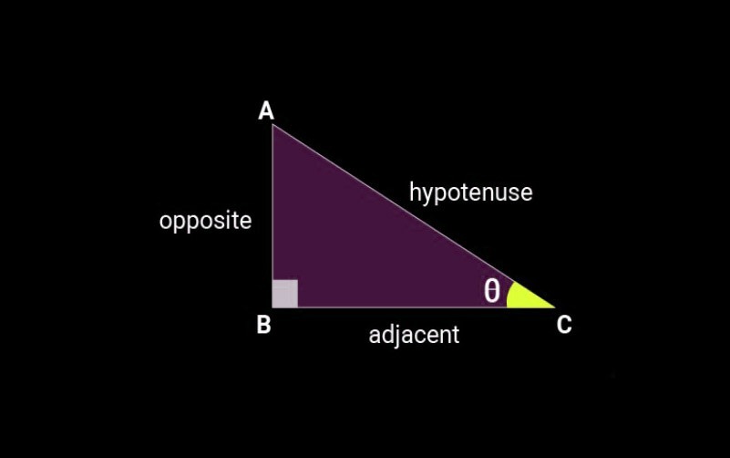 공식: sin(θ) = 빗변에 대한 대변 = 대변 ÷ 빗변